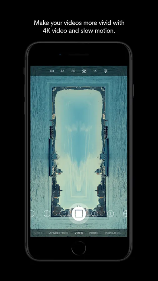 Nception supports 4K in-app video recording at 30 fps on iPhone 7 and later. You can switch between HD (1080p) and 4K (2160p) in the "VIDEO" section.