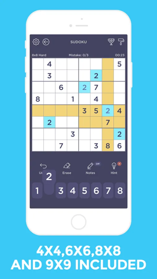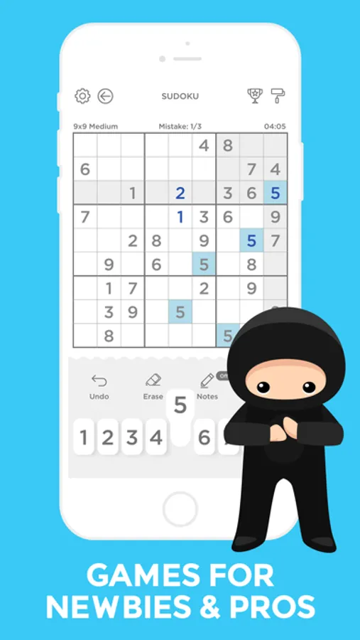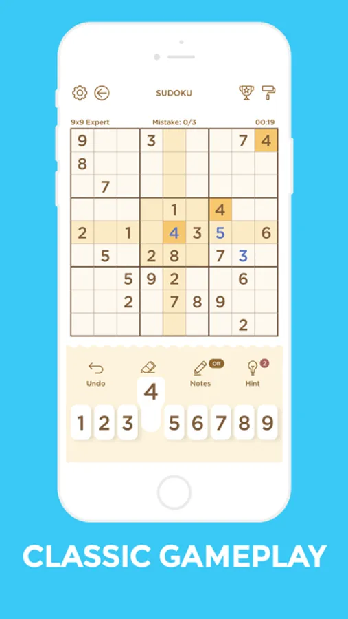 For newcomers or advanced players, there are different difficulty levels to choose from: Easy, Medium, Hard & Expert. The easy start will not scare your interest away while the challenging difficulty level will keep you entertained even if you are so familiar with this classic sudoku free puzzles.