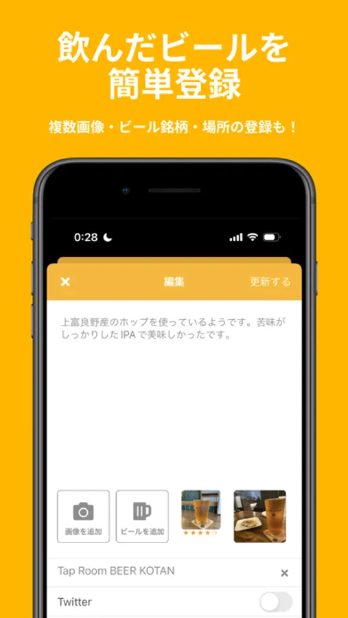 飲んだクラフトビールを登録して前に飲んだビールを管理できるようになります。その上、複雑な機能は削ぎ落とされており、だれでもシンプル・簡単に使えます。