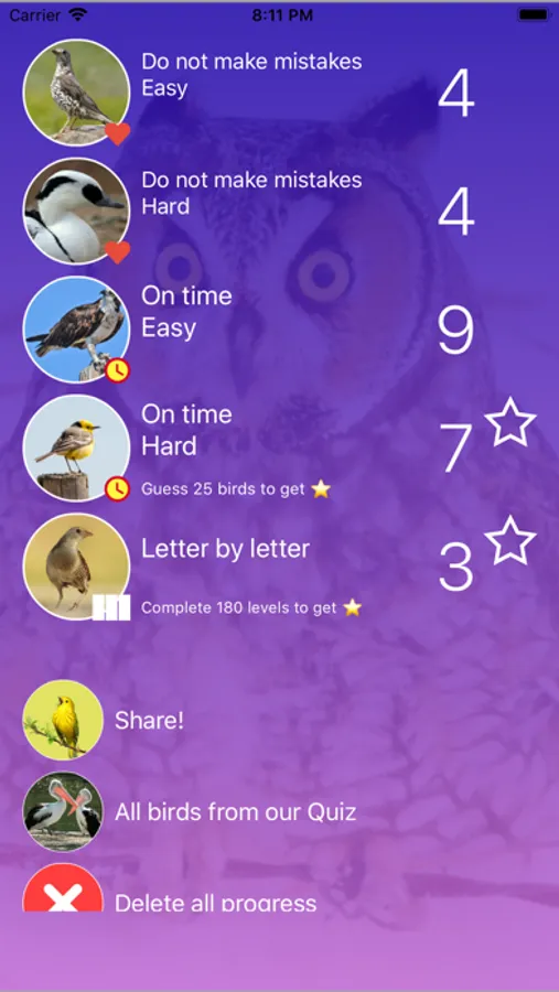 • Do not make mistakes - you are given three lives, four or six answers, and you have to guess as many birds as possible.