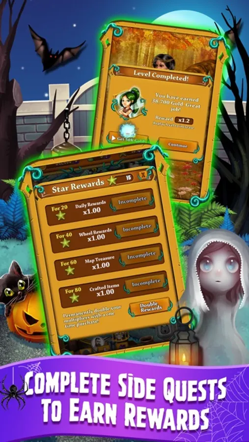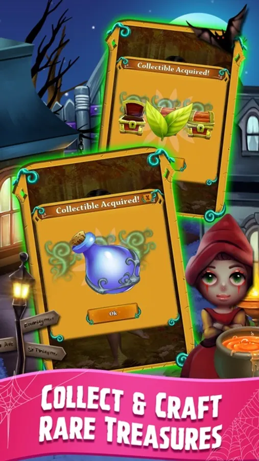 Our new match 3 game is the spookiest matching puzzle yet! Go on a haunted adventure through the secret mansion, explore unique worlds and solve fun, relaxing match 3 puzzles. With more content added each week and tons of extra features – from collecting HD artwork to crafting rare treasures, you’ll have hours of fun playing our new match 3 puzzle game.