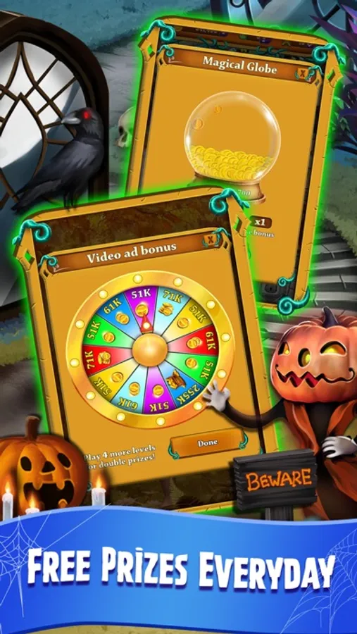 At match 3 secret mansion we love giving out free coins and prizes! You’ll receive huge daily rewards just for logging in, so make sure to keep checking back for the freebies. After you solve a match 3 puzzle, you’ll be able to open a mystery chest containing collectibles, coins and more. There’s even a magic coin globe which fills up over time, all you need to do is empty it!