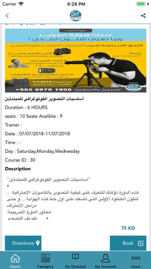 كذلك يتيح التطبيق Q8Dawrat الإعلان عن الدورات التدريبية للجهات المقدمة للدورات من معاهد تدريب ومحاضرين عن طريق شبكات التواصل الاجتماعي الخاصة بنا من انستغرام وتويتر و سناب شات وفيس بوك