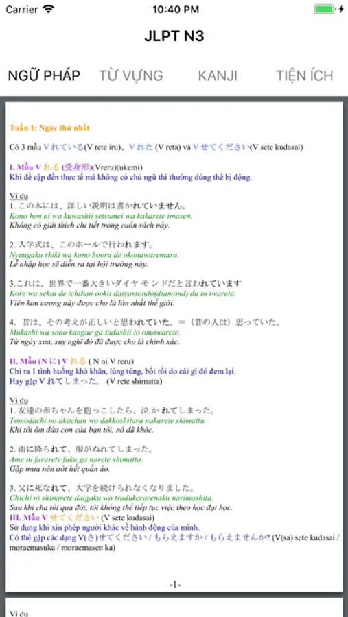 - Liệt kê các mẫu ngữ pháp tiếng Nhật N3