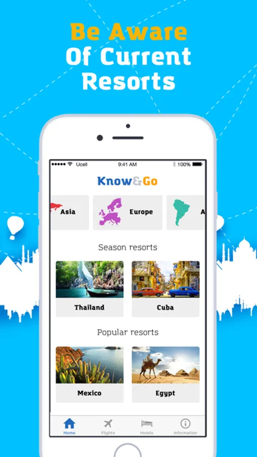 Know&Go mobile app. Journeys. Flights, Hotels - your assistant not only in booking flights and hotels around the world but also a source of useful information on countries! The application is suitable for anyone who wants to travel independently without contacting a travel agency.