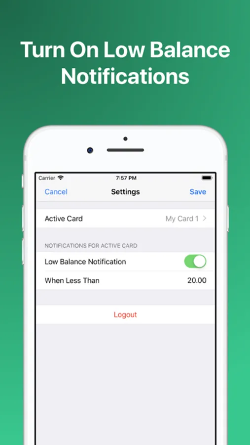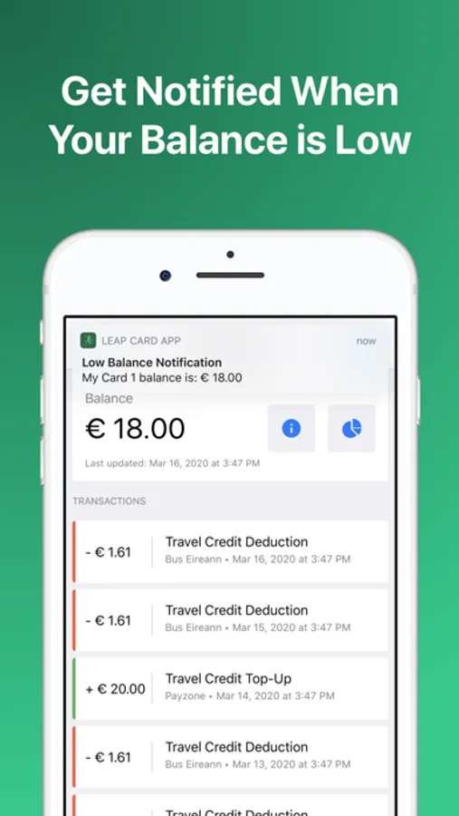 Option to turn on notifications to be notified when your leap card balance is running low.
