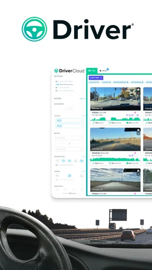 Driver uses machine learning algorithms to automatically capture hard braking, hard accelerations, speeding, near accidents, unsafe following events, and more. Data is knowledge and can be used by anyone to become a safer driver.