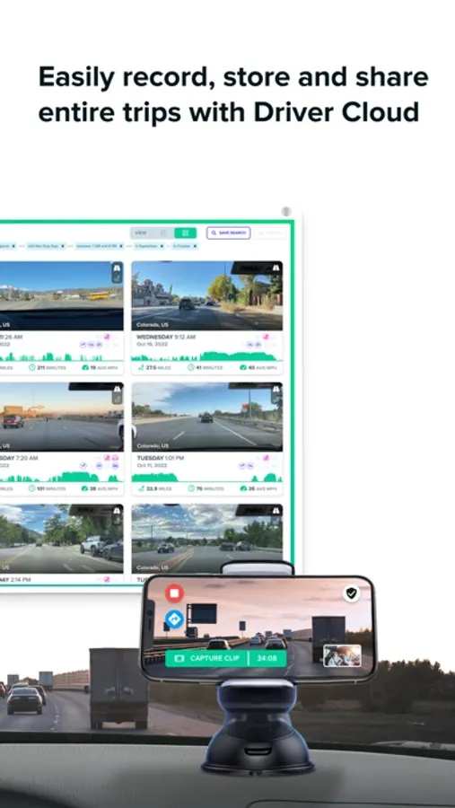 Backup full length HD videos of all your trips to the Driver Cloud with a 90-day lookback