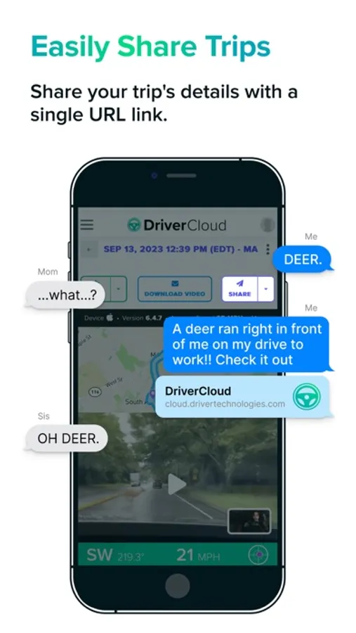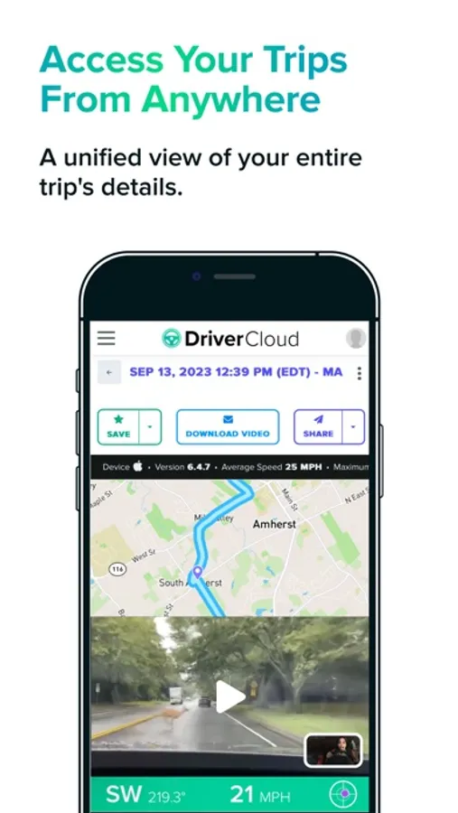 The Driver App has two primary modes for liability protection: 1) Dash Cam 2) Pocket Drives. In both modes, your trips are fully enriched with location, speed, G-force, weather, and telematic events and are automatically uploaded to the Driver Cloud after the end of your drive. Sharing a trip with your insurance, boss, or family is as easy as sending a URL link to your trip on the Driver Cloud.
