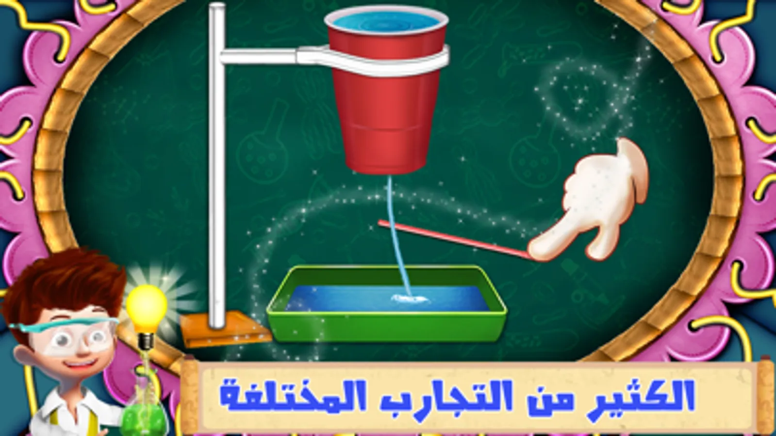 حيث يقوم اللاعب بالقيام بعدد كبير من التجارب العلمية المختلفة ضمن اللعبة ومراقبة النتائج مع الشرح والتفسير باللغة العربية