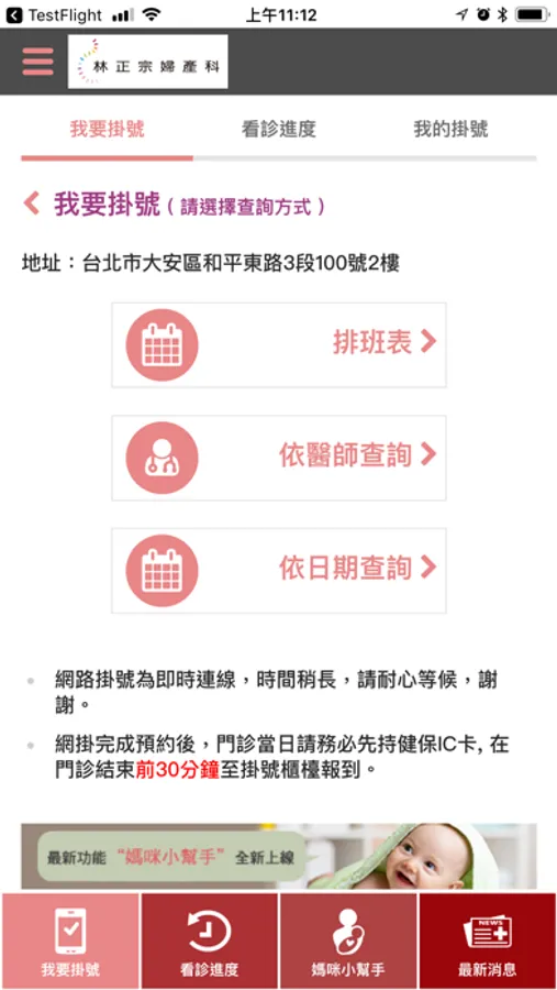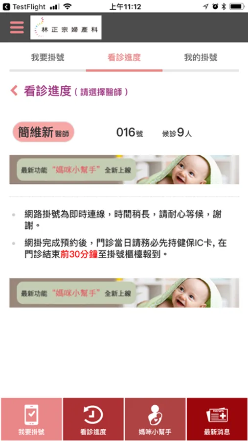 2.即時查詢看診進度 ,不需重覆詢問櫃檯人員號碼的進度 。
