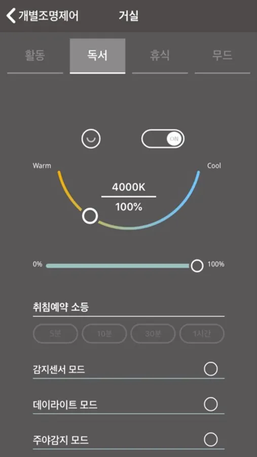플라티는 스마트합니다. 굳이 앱이나 벽 스위치로 플라티를 끄고 켜고 할 필요는 없어요. 여러분의 존재를 감지하고, 주변 밝기를 감지하여 지동으로 조명을 끄고 켜고 밝기를 조절합니다. 플라티 앱으로 나의 취향을 한번만 알려주세요.