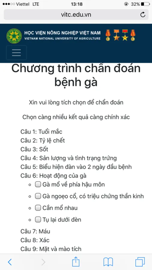 1 - Bộ câu hỏi về biểu hiện của đàn gà: Theo đó, người chẩn đoán cần tìm thông tin để trả lời những câu hỏi đó thông qua quan sát triệu chứng lâm sàng và bệnh tích đại thể.