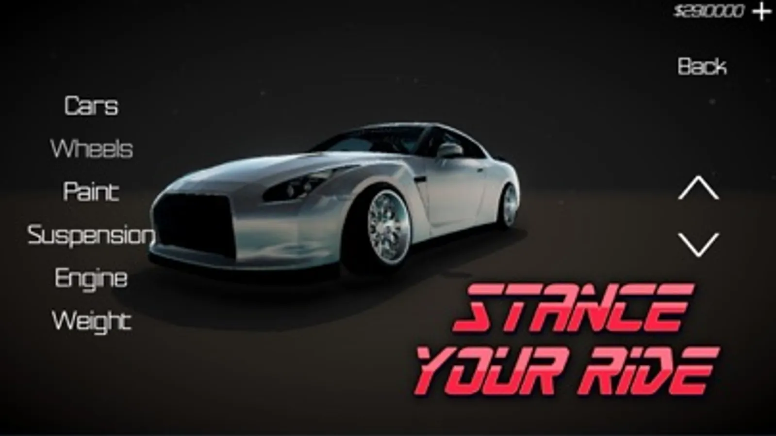 You can select from 6 iconic Nissan cars, and build your ultimate drift missile. You can tune the engine, modify the whole suspension set up, front camber, rear camber, offset, ride height. You can also do weight reduction which you can do for really cheap and experience that power is not everything, and how much easier you can handle your car after dropping some weight from it.
