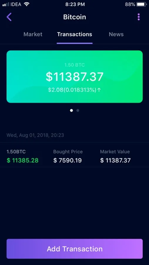 5. Transactions - Add or edit transactions to your portfolio in a snap.
