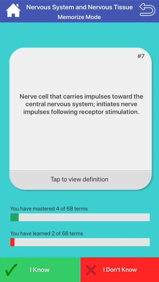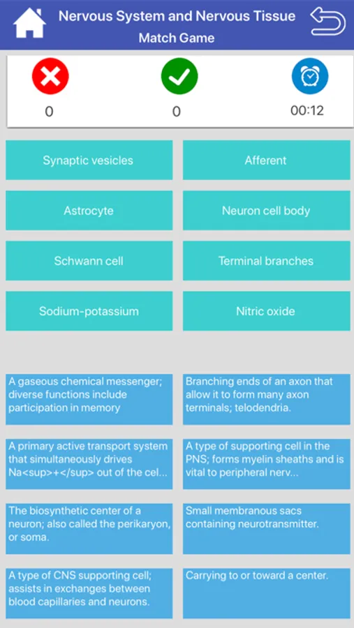 Our app contains study mode, memorize mode, test mode and match game for self learning and exam on the topics of nervous system.