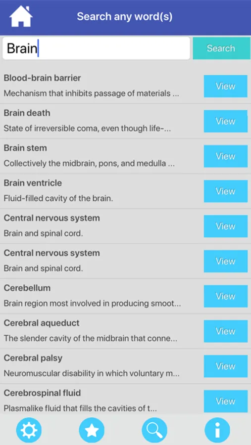 - Search a nervous system word in all flashcards quickly.