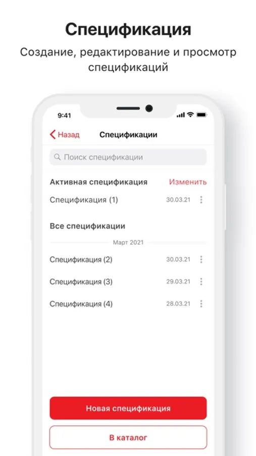 Спецификации. Создавайте спецификации, копируйте, редактируйте и делитесь ими с другими людьми.
