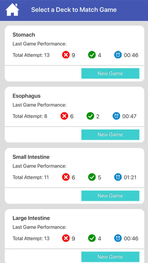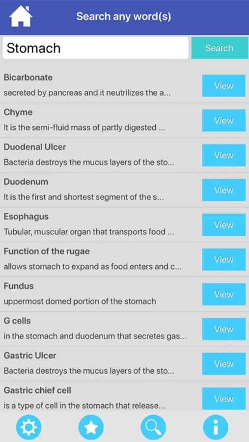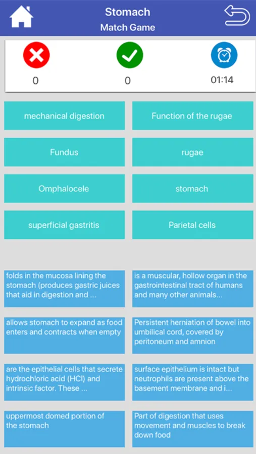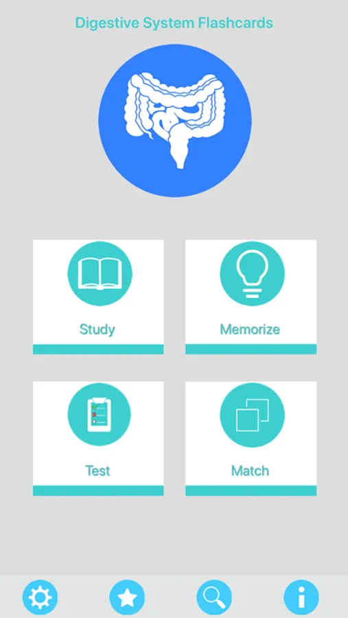 Our app contains study mode, memorize mode, test mode and match game for self learning and exam on the topics of digestive system.