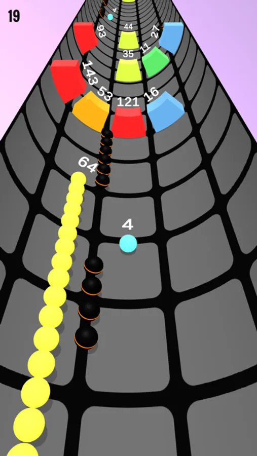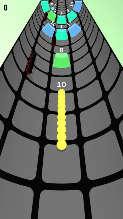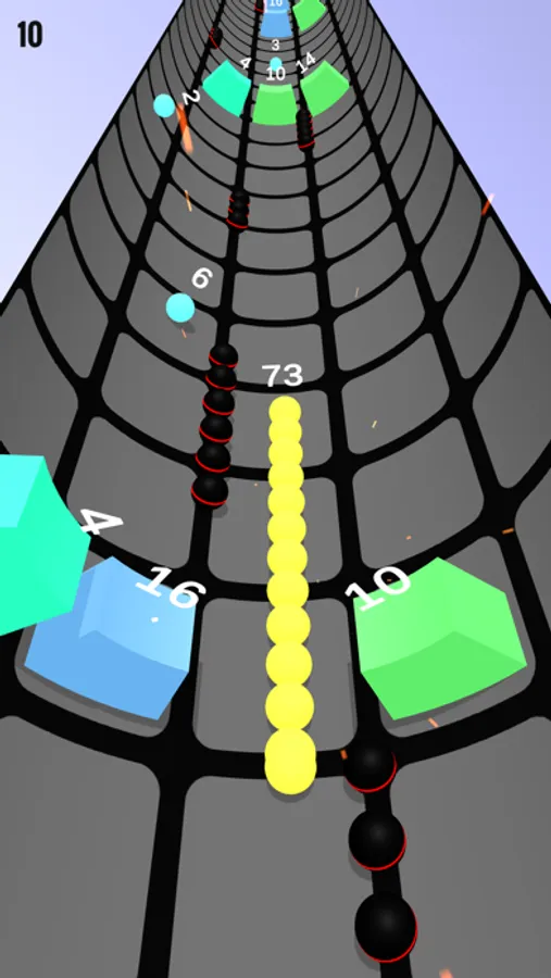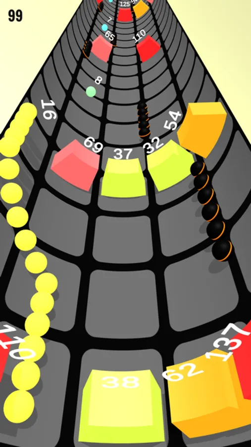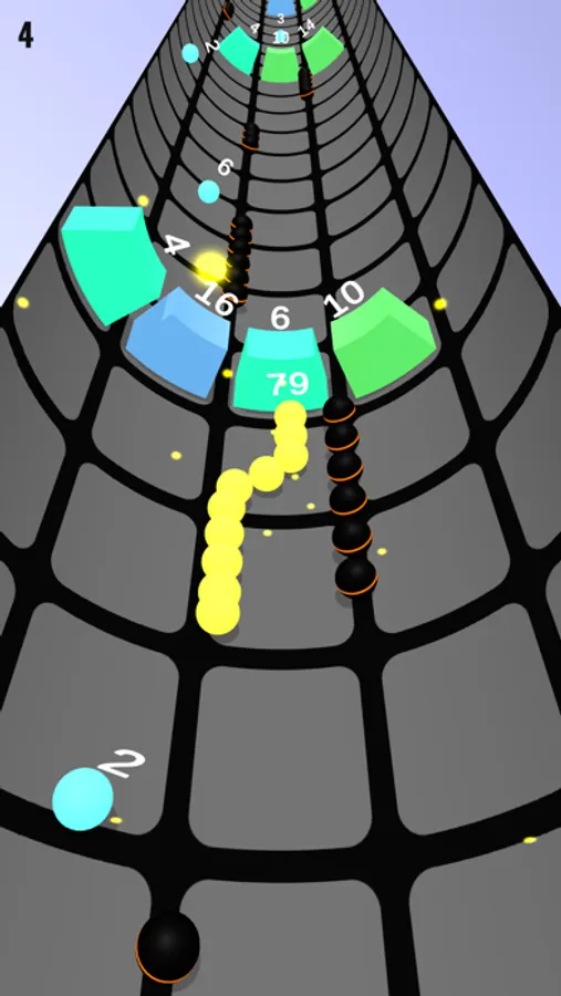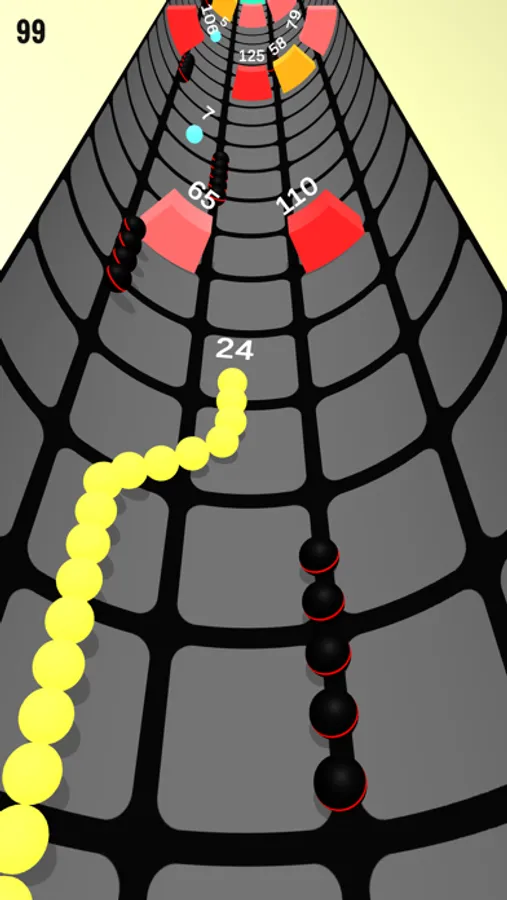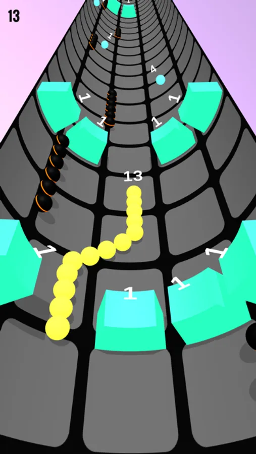 The snake head collide the color block will use up the snake balls. It will take more snake balls to break the deeper color block. Breaking the block can collect scores.