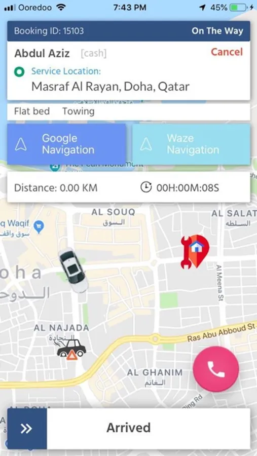 Booking Order: Once you “Online” you will get the booking order pop-up on your mobile app page. It will show the location of the service with total amount and also payment type whether cash or card