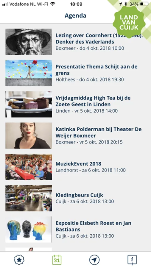 Met de Land van Cuijk app op je telefoon ben je op ieder moment van de dag op de hoogte van alle evenementen en activiteiten in alle dorpen van de gemeenten Boxmeer, Cuijk, Grave, Mill en Sint Hubert en Sint Anthonis