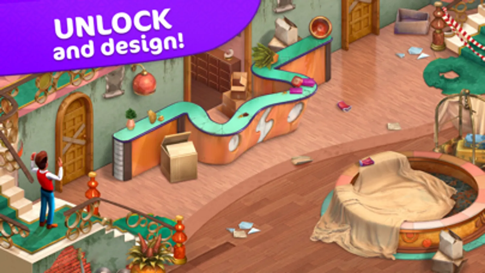 The artistically decorated interior in the old mansion mesmerizes from first sight! Seek and find hidden objects, earn stars, pick up the design and renovate the Hidden Hotel to your taste.