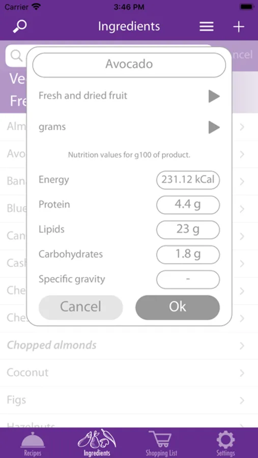 - more than 270 ingredients already entered;