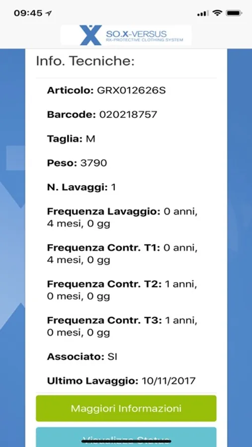 Consente di recuperare informazioni tecniche sui capi X-VERSUS scansionando o digitando il barcode oppure il tag.