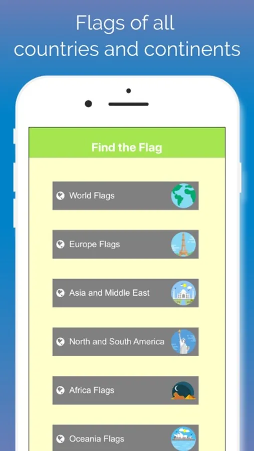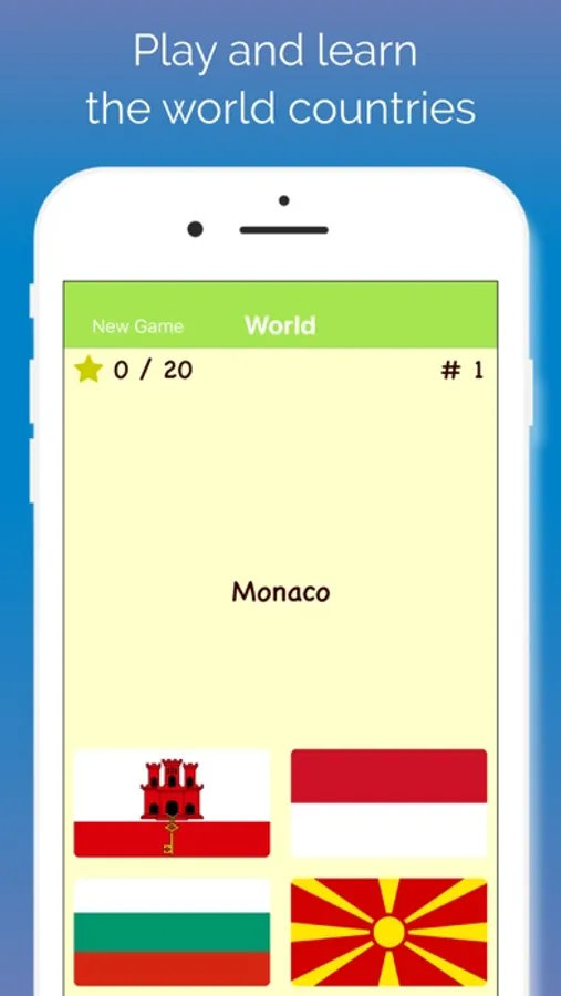 The educational trivia game to find a flag of the country. Play and educate yourself.