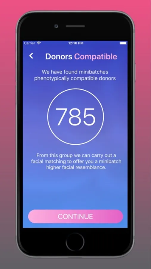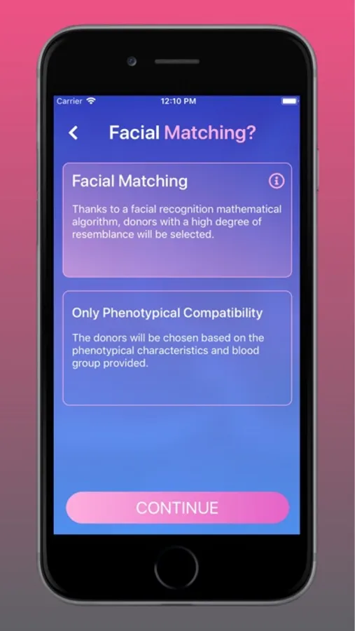In addition to the introduction of the phenotypic data of the patient and the couple (optionally), the App gives the possibility of taking a photo of the patient, to carry out a facial matching with potential donors from whom the bank has eggs.
