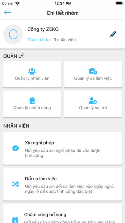 Ngoài ra, ZEKO còn cung cấp tính năng quản lý nhân sự, quản lý chấm công cho các công ty, doanh nghiệp qua ứng dụng mã QR, mang đến một giải pháp cho các doanh nghiệp giúp đơn giản hoá mọi công việc năng nhọc của bộ phân nhân sự cũng như bộ phận kế toán.