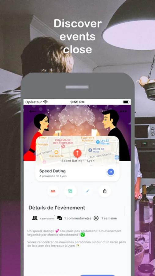 Meenie was born as a result of a move and a simple statement. When arriving in a new city, it is difficult to meet people and find hobbies. That's why Meenie simplifies your life and selects the activities closest to you!