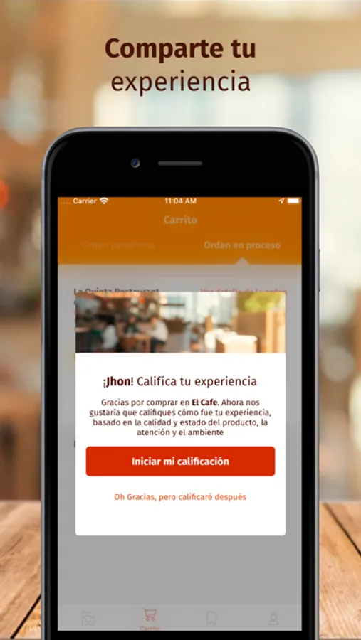 Califica tu pedido y experiencia de compra en el restaurante. Comparte tu experiencia con otros en la comunidad.