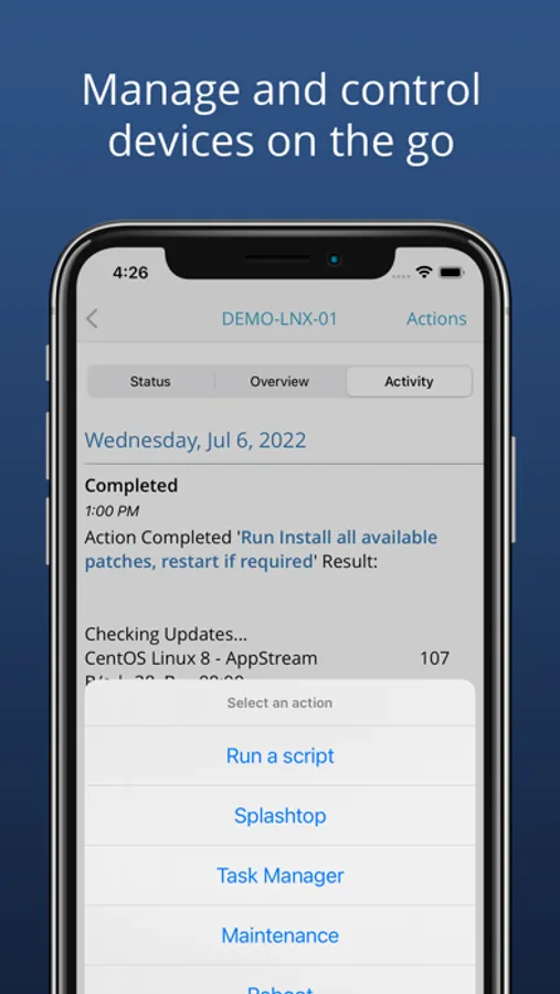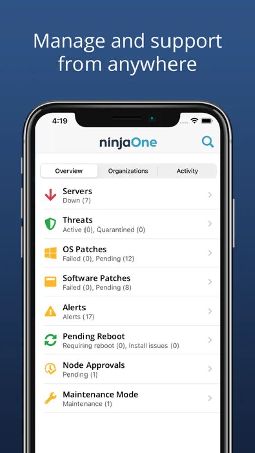 NinjaOne is the industry’s only unified IT management solution the centralizes and consolidates your IT management workflows into a single pane of glass. The NinjaOne app gives you the power to manage IT and support end-users from anywhere, providing a better IT experience for everyone.