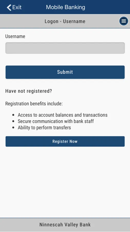 Enrolling in Ninnescah Valley Bank Mobile App is easy as 1, 2, 3! You must be an online banking user with Ninnescah Valley Bank before you can use the app. To sign up for online banking, please visit nvalleybank.com for online banking then simply download the app from the app store, log in with your online banking credentials (access id and password) and start banking at your fingertips.