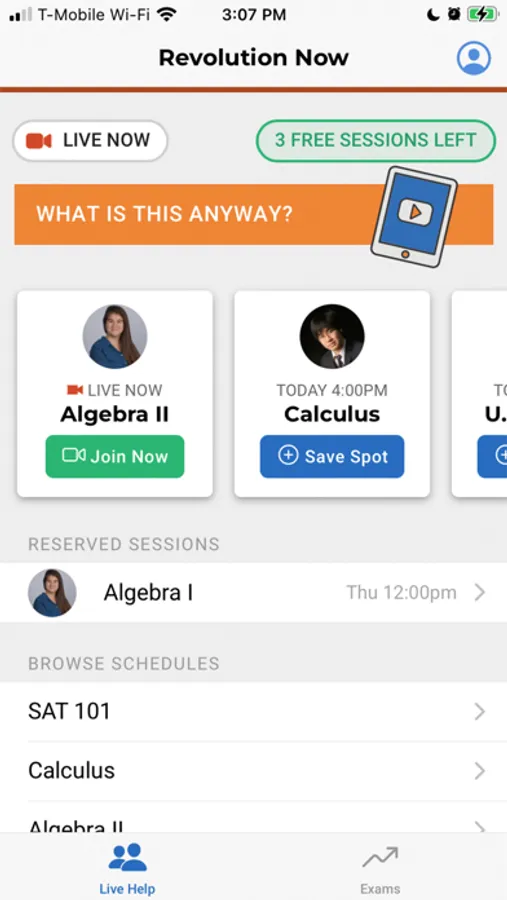 Access on-demand help for any subject in school with 3 free Revolution Now sessions, which lets you launch chat and video sessions with a live tutor, self-proctor an exam at home or on-the-go, and score your SAT, ACT, or PSAT exam in a flash. Simply take a picture of your test and instantly get your score! The Revolution Prep app will save all of your score reports, and automatically track your progress in one convenient place.