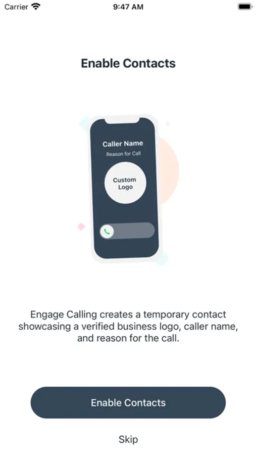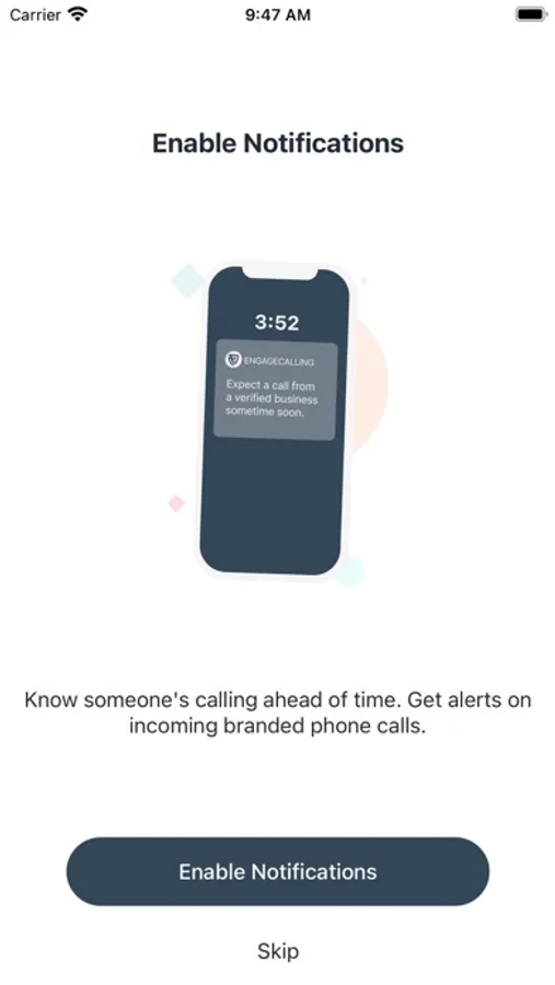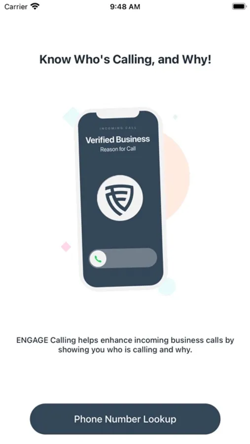 ENGAGE Calling helps enhance incoming business calls by showing you who is calling and why. Once installed, the identification process works entirely on its own and requires no further action from you! When a verified, participating organization calls, you will receive an enhanced calling experience on those incoming calls, complete with a business logo, caller name, and reason for the call.