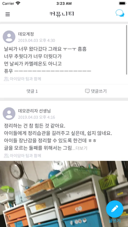 선생님, 회원 모두 글을 작성할 수 있고, 댓글 시스템도 적용되어 있습니다.