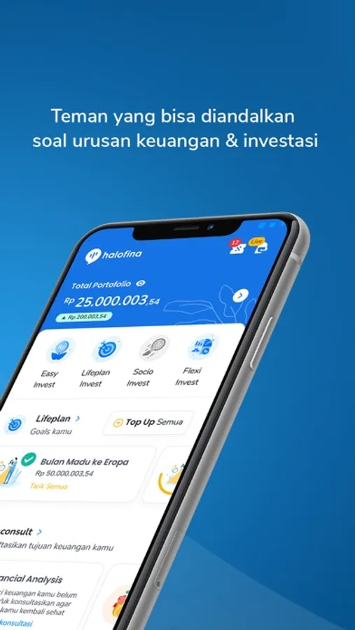 Lifeplan Invest didukung teknologi robo advisory yang dikembangkan oleh pakar keuangan berpengalaman, sehingga Halofina dapat memberikan rekomendasi investasi secara otomatis sesuai dengan tujuan keuangan dan profil risiko pengguna.