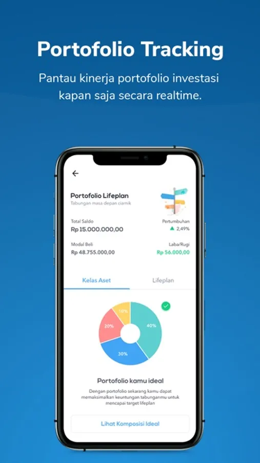 Pantau progress investasi masa depan juga kinerja seluruh portofolio investasi kamu secara real time dengan mudah kapan saja dimana saja.