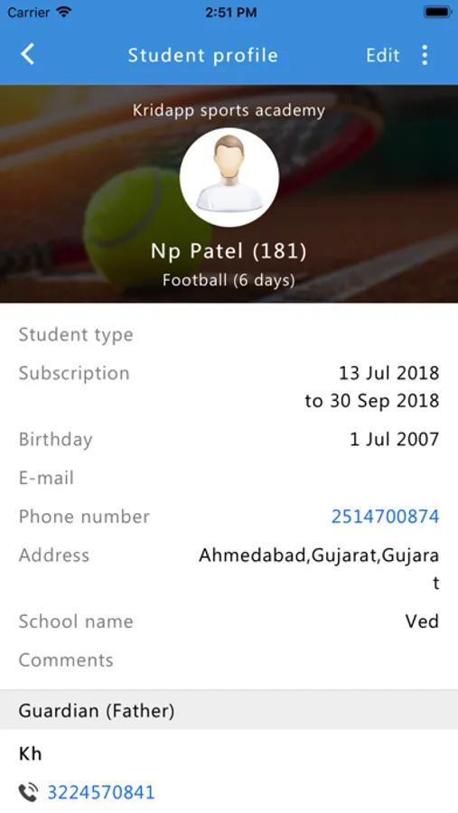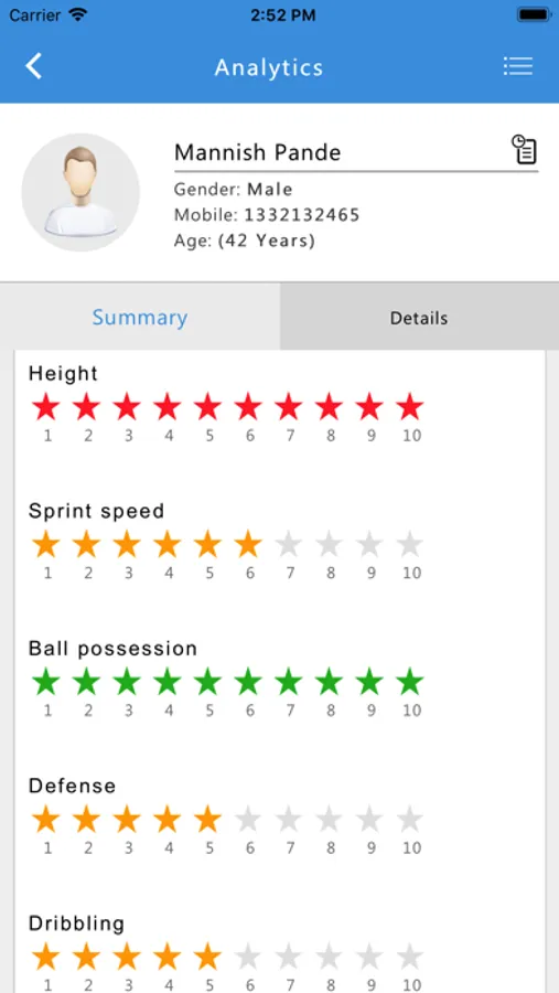 All details of the students like basic details, detailed analytics, Injury history, awards, scholarships and tournament performances can be maintained.