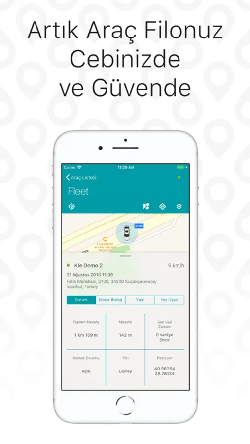 You can access the location of the vehicles in your fleet from your mobile phone at any time, and you can get the street view of the vehicle's location.