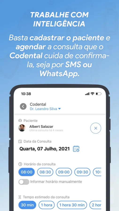 Não deixe de conhecer a versão completa do Codental, o único que confirma suas consultas por SMS e WhatsApp automaticamente.