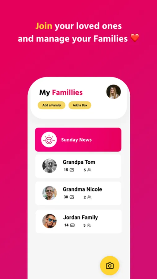 Create Families and invite your loved ones to join to share meaningful memories with them.