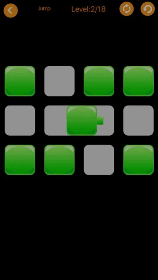 Skip the adjacent square to the empty space, the skipped square will disappear, and the last square will pass.