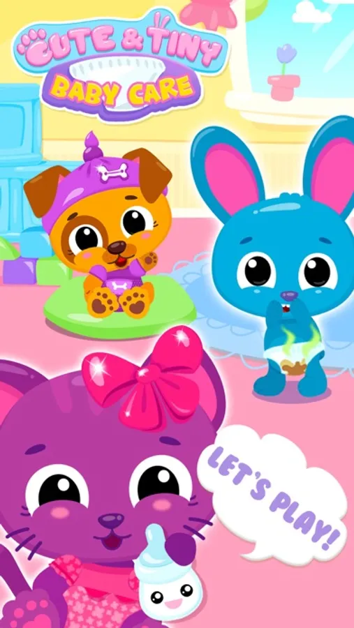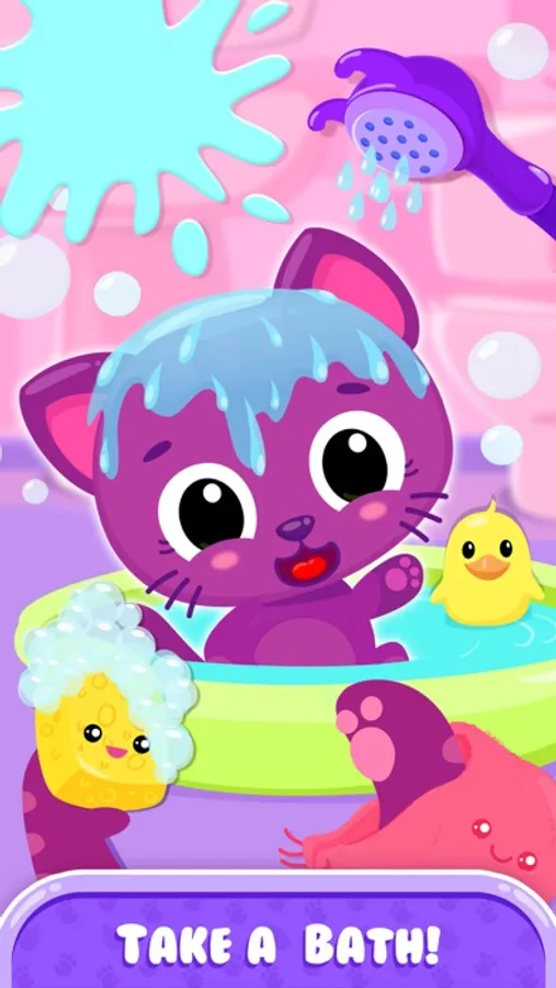 Kitty Sue, puppy Bu, and bunny Blu need a lot of attention, care, and love! Change their stinky diapers (ew, poop!) and bathe the babies! Catch the bubbles - yes, it’s not easy! Rinse your baby pet’s fur and dry it with a soft towel. Dress up your baby pet - match clothes correctly! Don’t forget to feed the baby and give a bottle of yummy milk! Yay! The fluffy animal babies and their moms are so happy now! You are such a good helper!