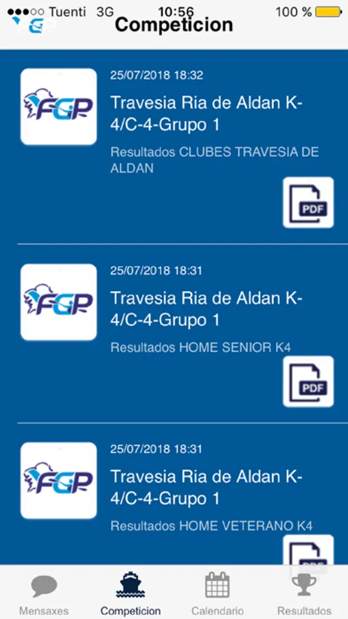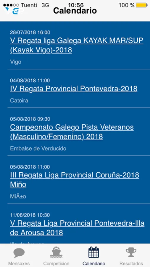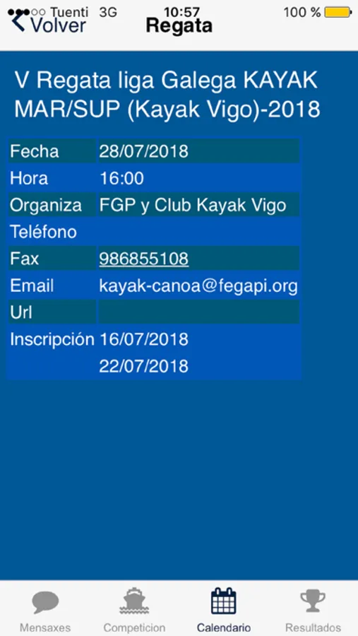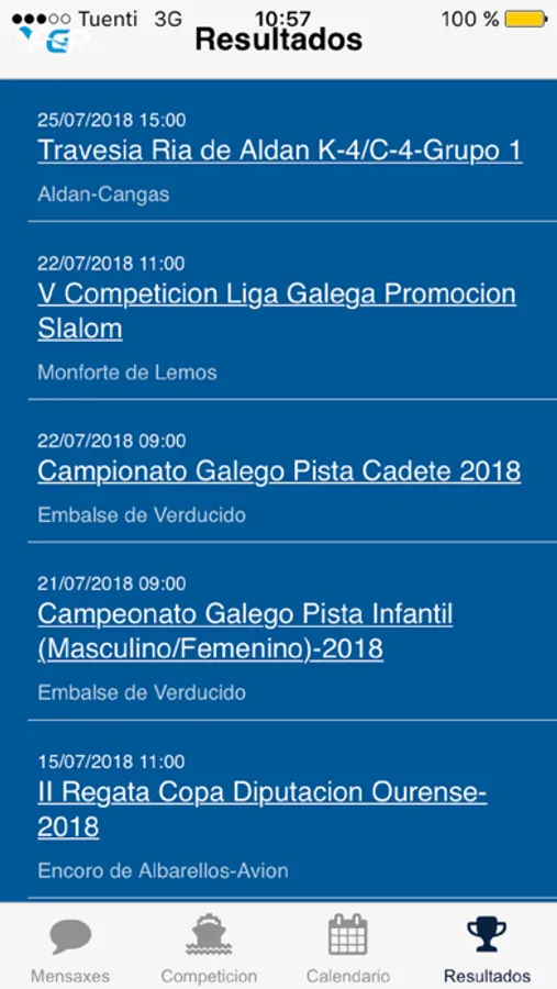 Aplicación para mensajes, calendario y resultados de las competiciones organizadas por la Federación Gallega de Piragüismo