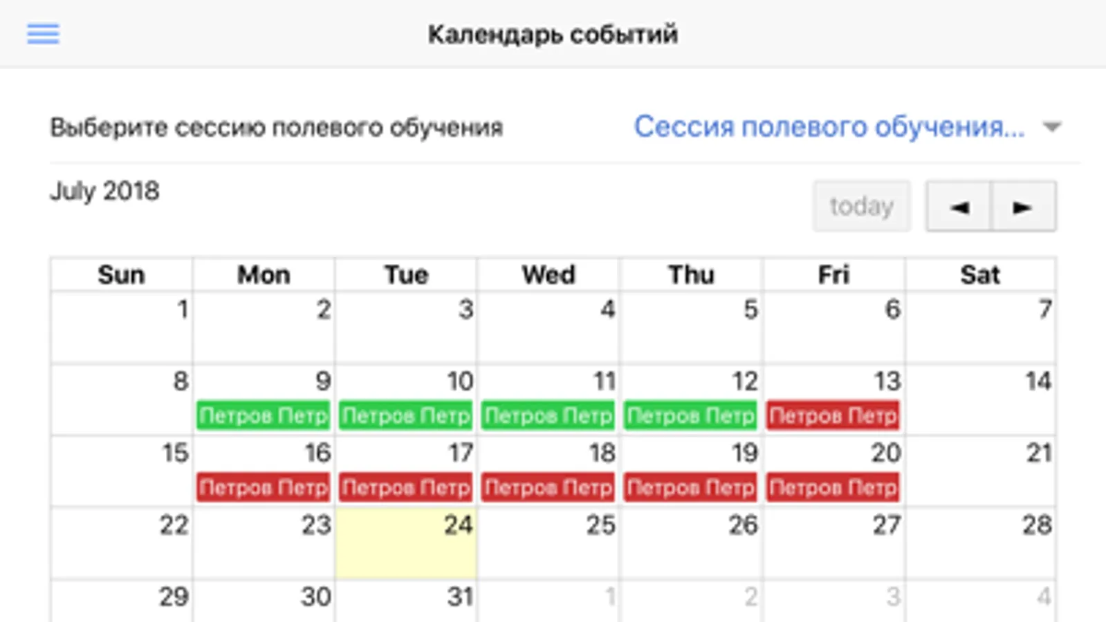 Приложение предназначено для онлайн обучения и отслеживания ближайших событий