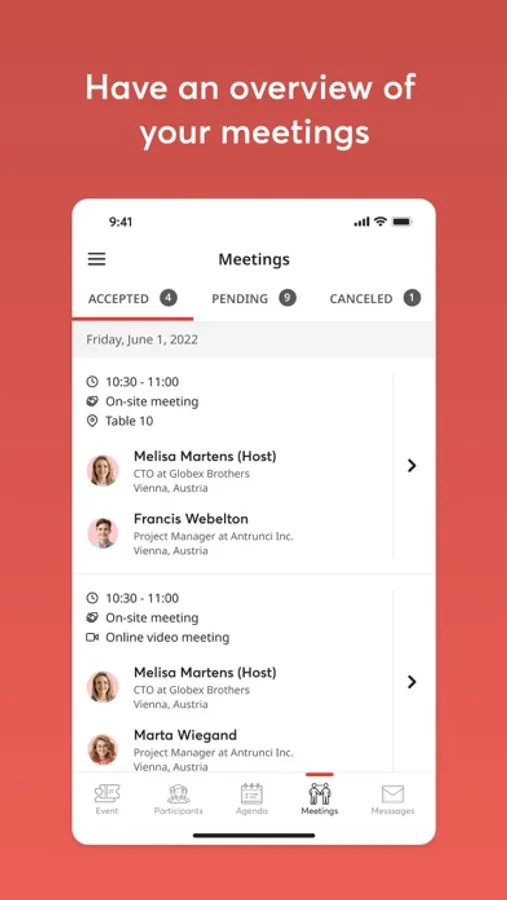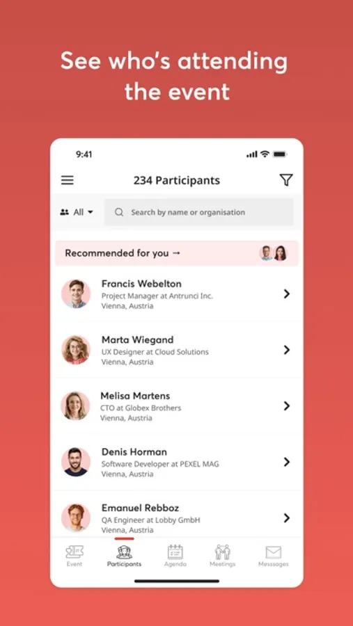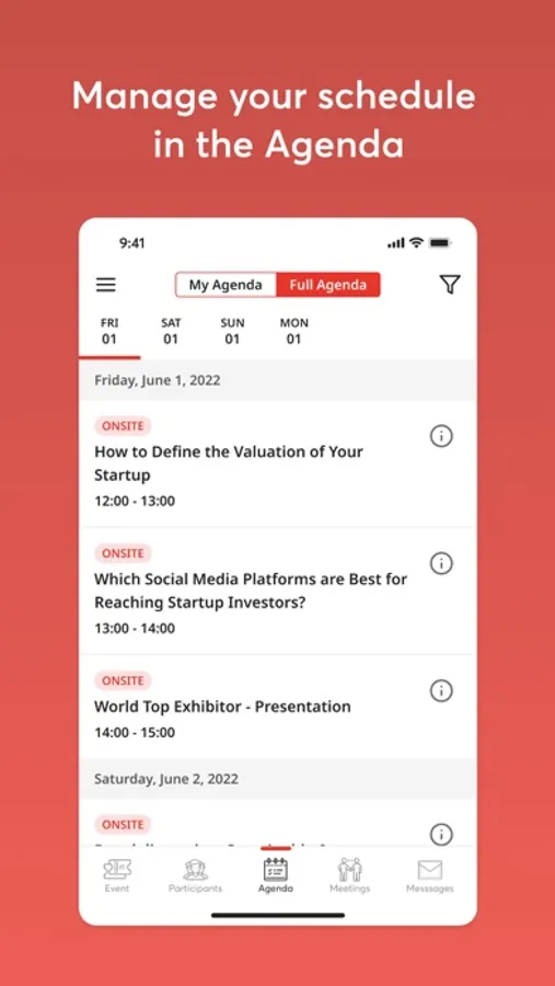 The Startup Invest Events App enables you to directly book other participants for face-to-face meetings and provides you with your personal agenda, including all your meetings, sessions, workshops, etc.